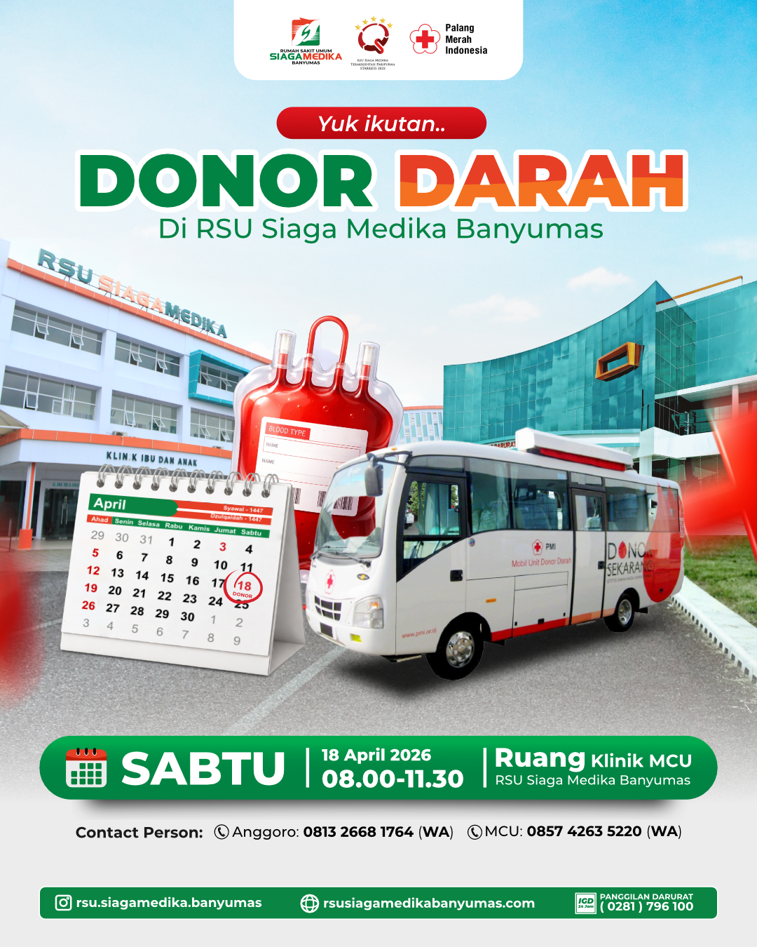 Banyumas, 18 April 2026 , RSU Siaga Medika Banyumas bekerja sama dengan PMI Banyumas telah melaksanakan kegiatan donor darah...