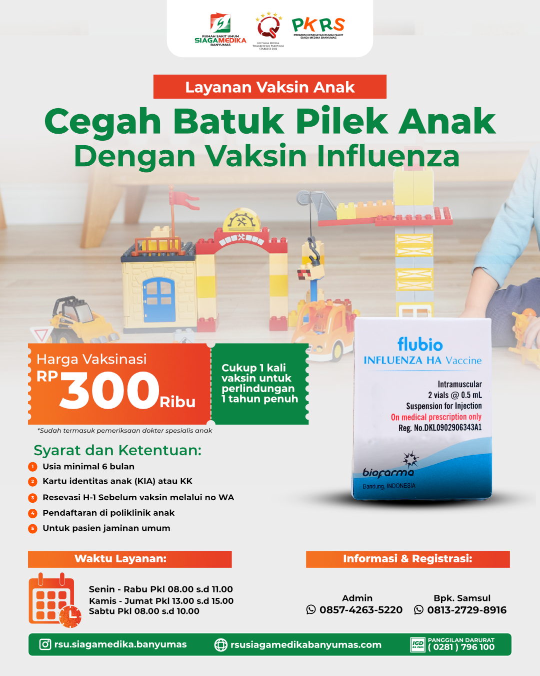 RSU Siaga Medika Banyumas menghadirkan layanan vaksinasi influenza bagi anak sebagai upaya pencegahan penyakit batuk pilek yang se...